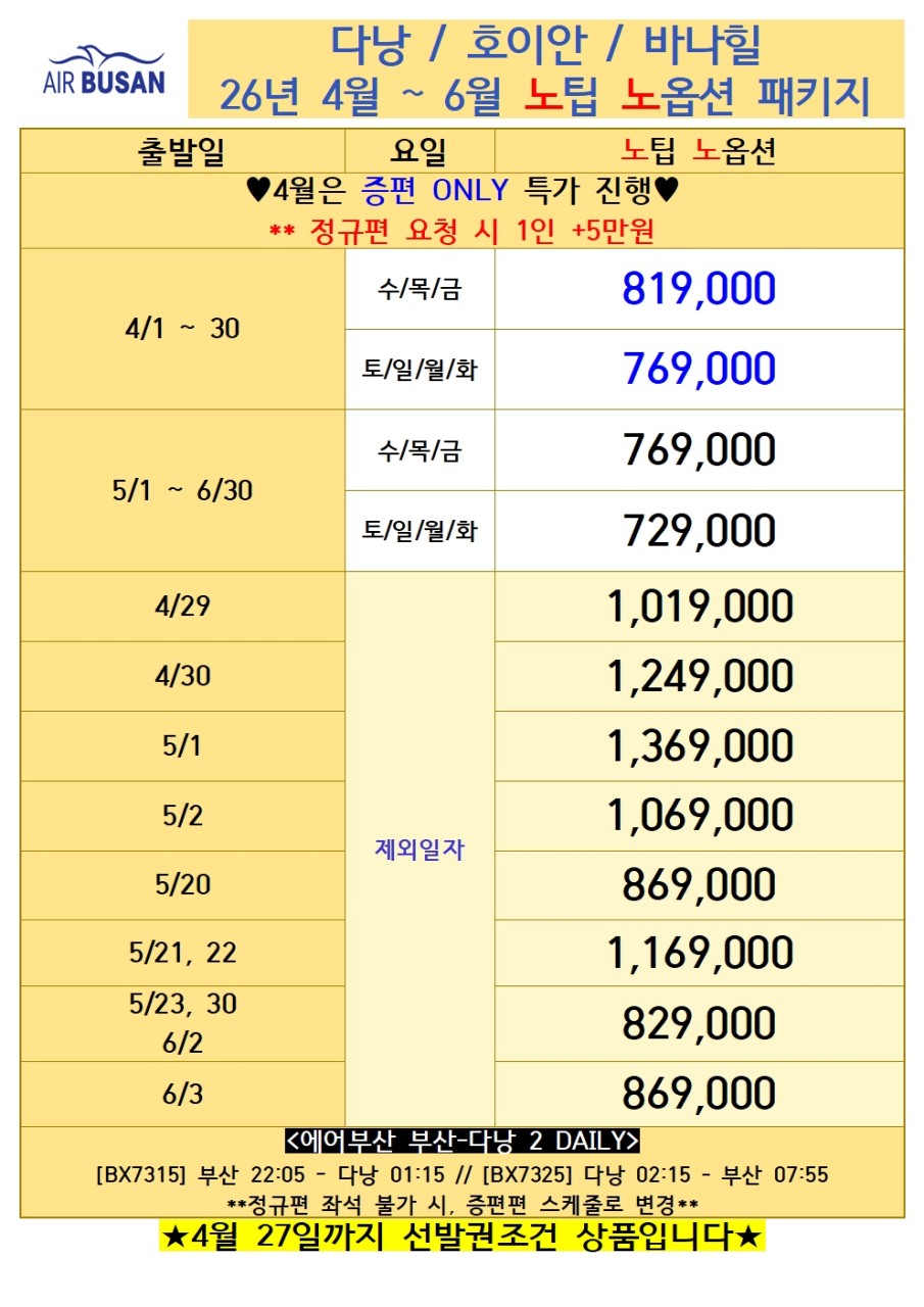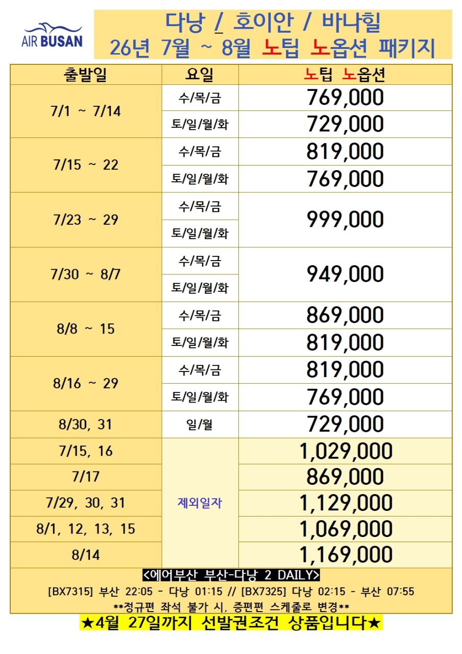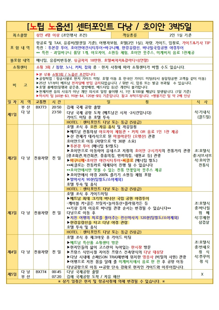 | 스케쥴/패턴 | 노팁노옵션 3박5일 |