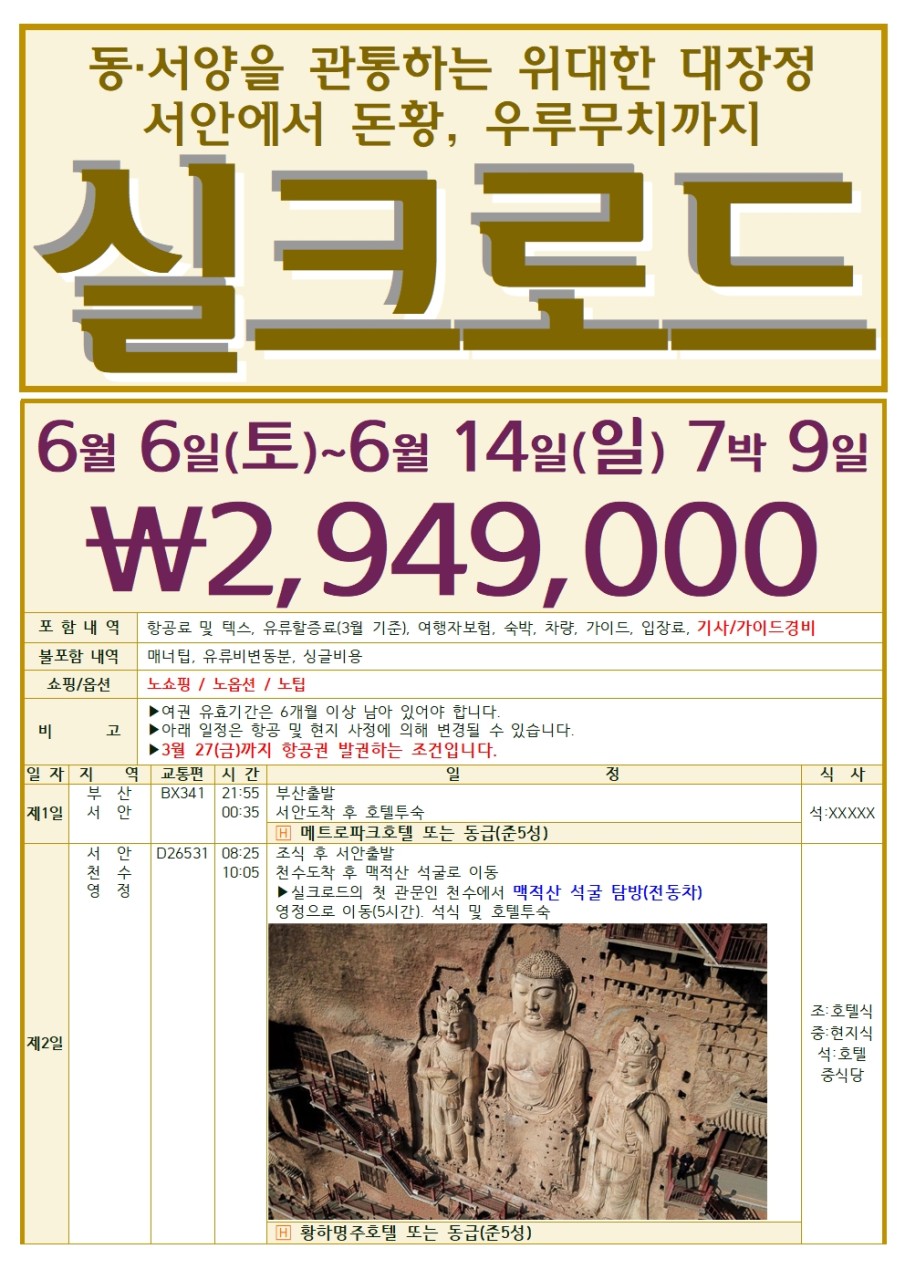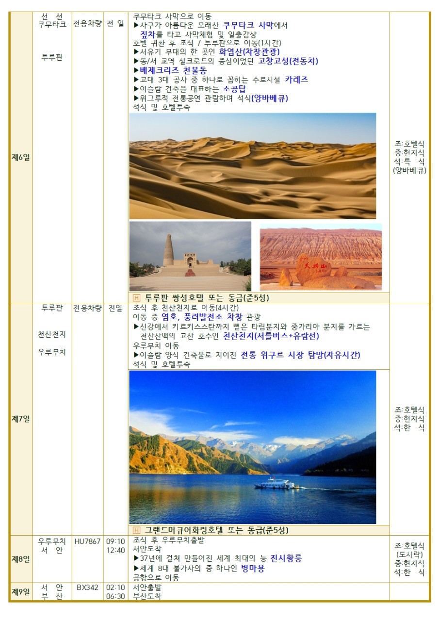 [부산출발]❤️6/6(토) 실크로드 7박 9일 패키지 여행