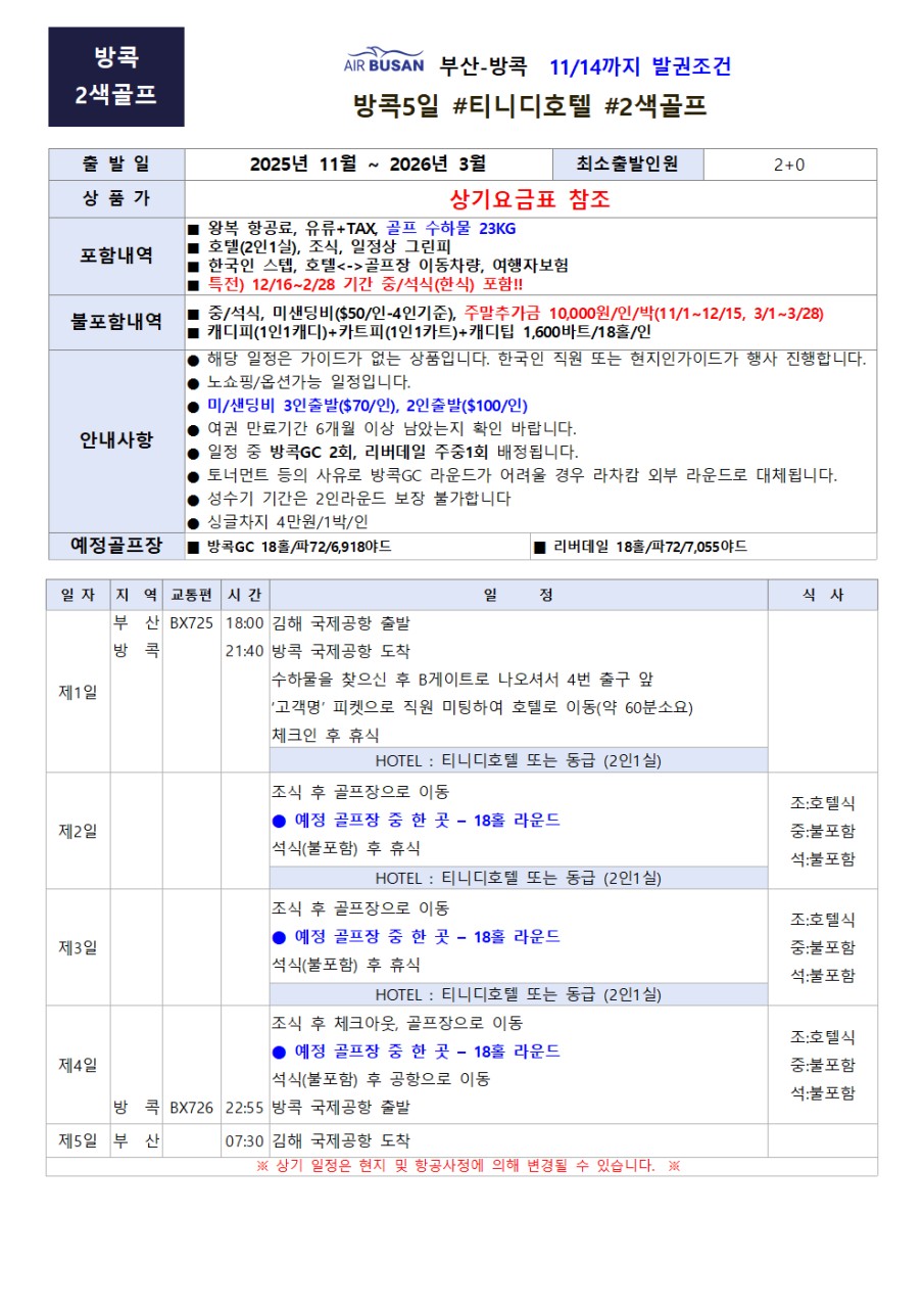✅ 에어부산 골프 수하물 23KG 제공