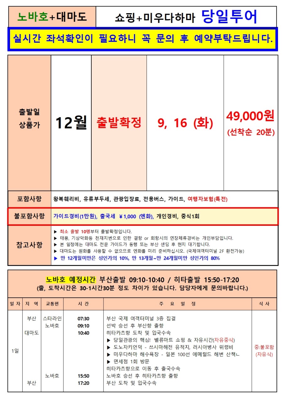 ✨12/9, 16, (화) 노바+당일투어 49,000원 여행자보험(특전)