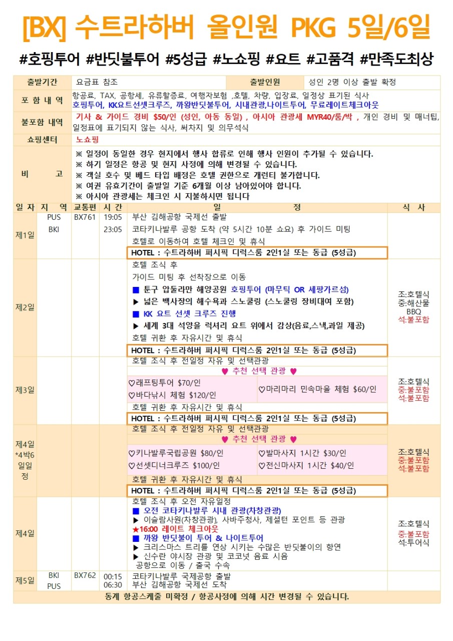 코타키나발루 올인원 PKG 5일/6일