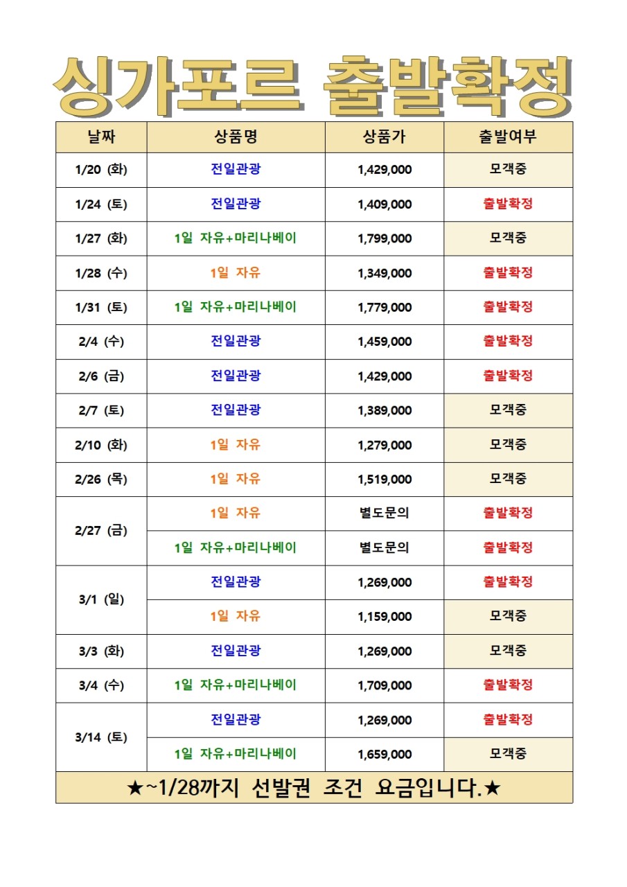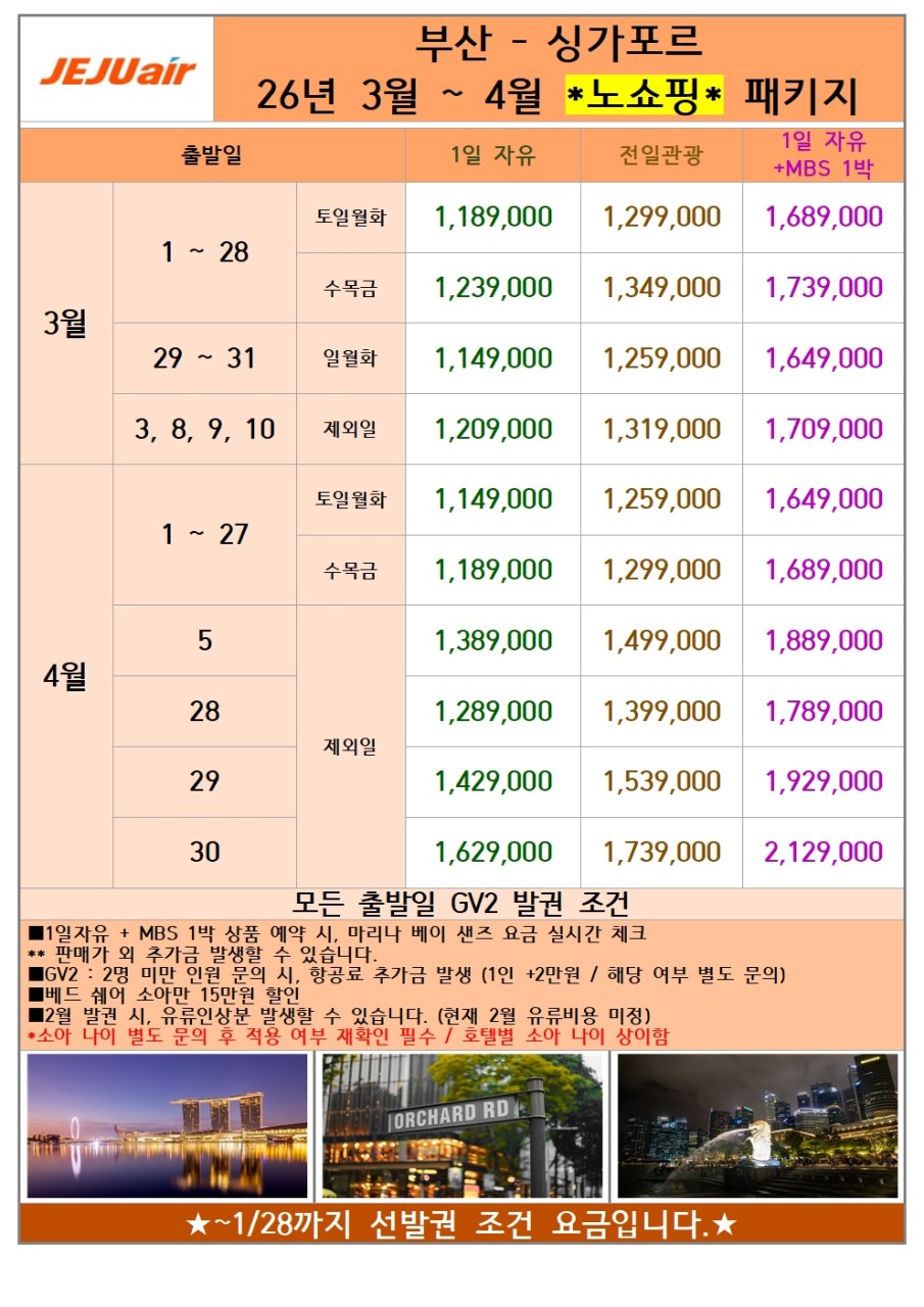 📌싱가포르 예약 기간 별 써차지 발생할 수 있습니다.