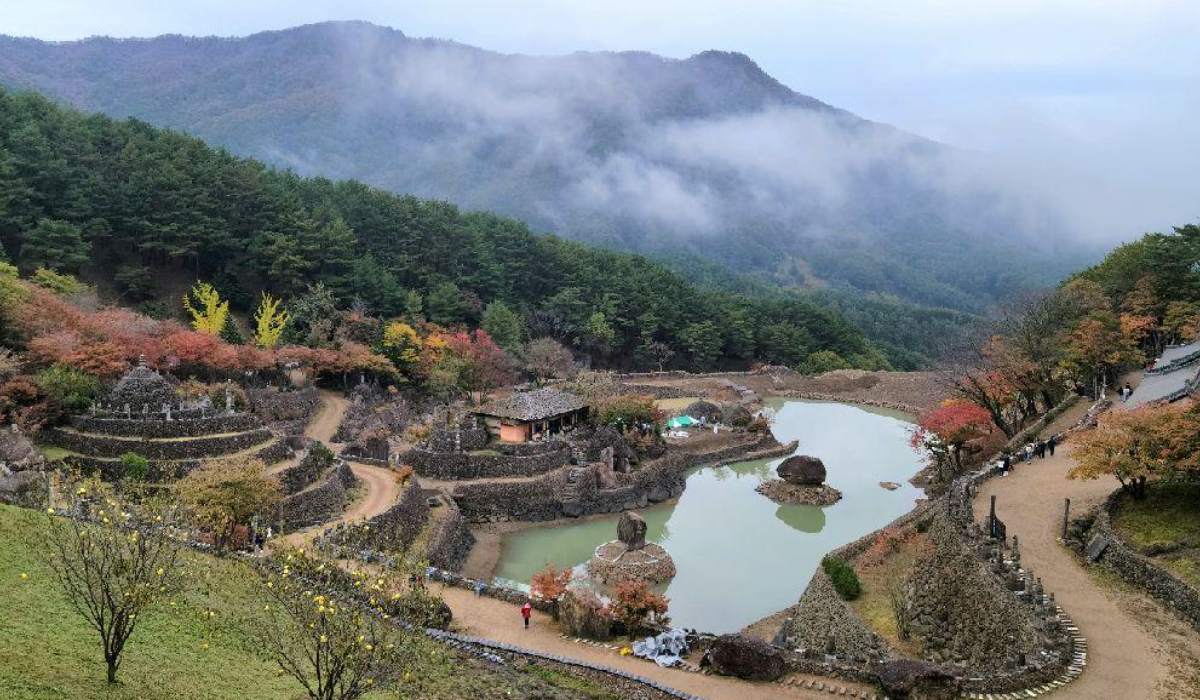 | ์ฒญ์๋ฉด ๋ฌต๊ณ๋ฆฌ์ ์์ฌํ๋ฉฐ ํ๋ฏผ์กฑ์ ์์ฐ์ธ ์ง๋ฆฌ์ฐ ํ์ ๊น์ด ์ฒญ์๋ฉด ์ฒญํ๋ ์ฐ๊ธธ์ ํ๋์ 1.5ใ๊ฐ๋ ๊ฑธ์ผ๋ฉด ํด๋ฐ 850m์ ์ผ์ฑ๊ถ์ด ์๋ฆฌํ๊ณ ์๋ค. ์ผ์ฑ๊ถ์ ์ ํํ ๋ช ์นญ์ ๋ฐฐ๋ฌ์ฑ์ ์ผ์ฑ๊ถ์ผ๋ก, ์ด ๊ณ ์ฅ ์ถ์ ๊ฐ๋ฏผ์ฃผ(ํํ์ ์ฌ)๊ฐ 1983๋ ์ ๊ณ ์กฐ์ ์๋์ ์๋๋ฅผ ๋ณต์, ๋ฏผ์กฑ์ ์ฑ์กฐ์ธ ํ์ธ, ํ์ , ๋จ๊ตฐ์ ๋ชจ์ ๋ฐฐ๋ฌ๋ฏผ์กฑ์ฑ์ ์ผ๋ก ๋ฏผ์กฑ์ ์ ํต ๋๋งฅ์ธ ์ ๋๋ฅผ ์งํค๊ณ , ์ ์ ๋๋ฅผ ์ํํ๋ ๋ฏผ์กฑ์ ๋์ฅ์ผ๋ก ์๋ฆฌ ์ก์๊ฐ๊ณ ์๋ค. ์๋ ๋ถํฐ ์ ํด ๋ด๋ ค์ค๋ ์ ๋๋ฅผ ์ด์ด๋ฐ์ ํํ์ ์ฌ๊ฐ ์์๋ค๊ณผ ํจ๊ป ์๋ จํ๋ฉฐ ๋์ ์์ ์ฌ๋ฆฐ 1,500์ฌ ๊ฐ ๋ํ์ด ์ฃผ๋ณ์ ์ฒ๊ณผ ์ด์ธ๋ ค ์ด๊ตญ์ ์ธ ์ ์ทจ๋ฅผ ํ๊ฒจ๋ธ๋ค. ์ด ๋ํ๋ค์ ์ด๊ณณ์์๋ ์๋ ฅ ์๋๋ผ ๋ถ๋ฅธ๋ค. ์ผํ ์๋์ ์ฒ์ ๊ป ์ ์ฌ ์ง๋ด๋ ์ฑ์ง, ์๋์๋ ๋ณดํต ์ฌ๋๋ค์ ์ ๊ทผ์ ๊ธํ๋ ค ๋์ ๋๋ฌด์ ๊ธฐ๋ฌ๊ธฐ ์กฐ๊ฐ์ ์น์ ์๋๋ก ํ์ํ๋ค. ์ฑํฉ๋น์ ๊ธฐ์์ ๋ด๋ฏ, ์์์ ๋น๋ฉฐ ์ง๋ฆฌ์ฐ ์๋ฝ์ ๋๋ก ์๋๋ฅผ ์์ ์ ์๋๋ฅผ ๋ณต์ํ๊ณ ์๋ค. 3,333๊ฐ์ ์๋๋ฅผ ์์ ์ฑ์ ์ ์ด๋ฃจ๊ณ ์ฐ๋ฆฌ ๋ฏผ์กฑ ๊ณ ์ ์ ์ ์ ๋ฌธํ๋ฅผ ๋์ฐพ์ ํ์ต์ธ๊ฐ ์ธ๊ณ๋ฅผ ์ด๋ฃจ๊ณ ์ ๋ฌด์์ ๊ฐ, ๋ฌด, ์ ์ ์๋ จํ๋ ์ด๋ค์ ํฐ์ ์ด๋ค. | |