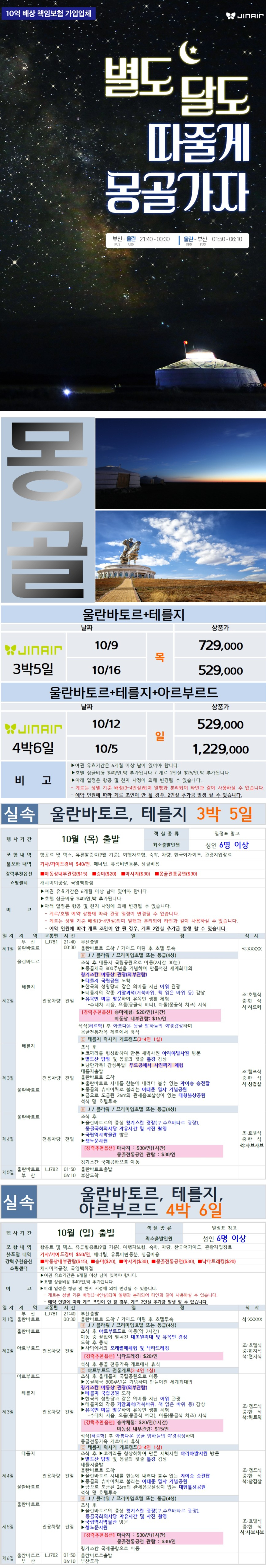 9월~10월 진에어 3박5일 / 4박6일 패키지🇲🇳